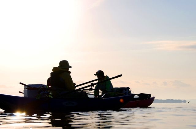 スタート!横並びの3選手。移動速度も釣果を左右する。