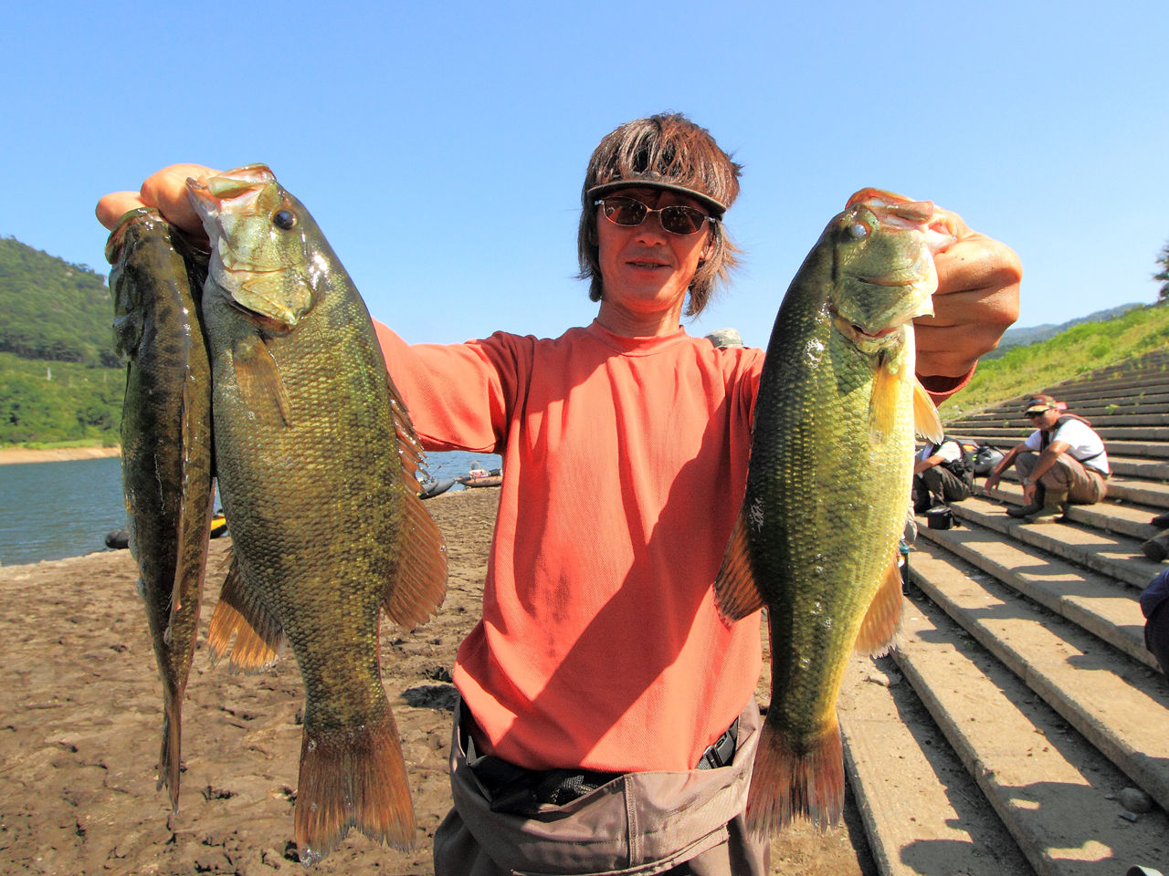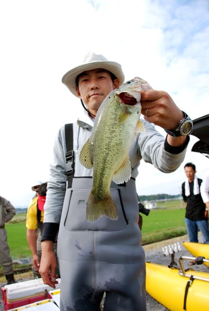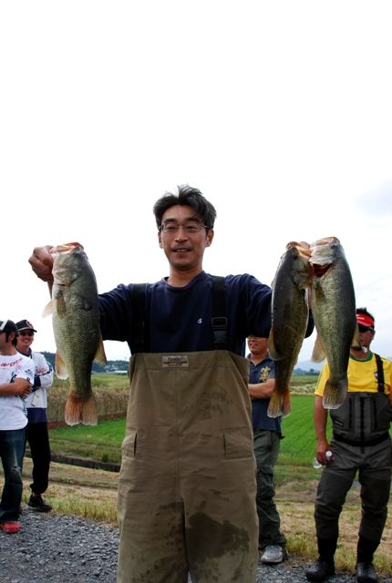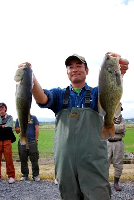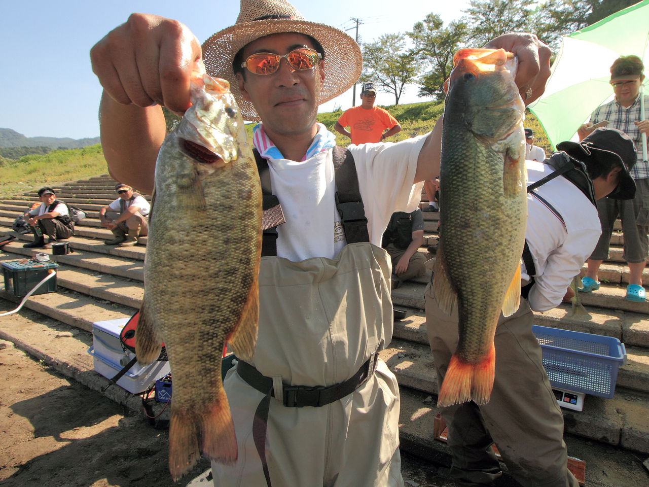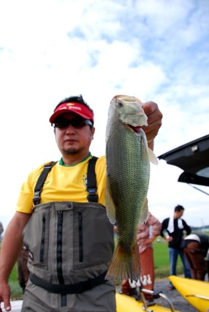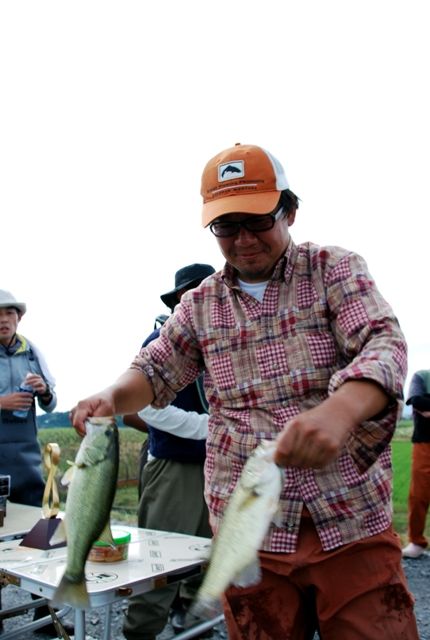 ウェイトは2本ながら2250g。近日の増水で、普段は手を付けない浅いアシに着目。朝、東浦北岸のアシに向かいヤマセンコーでキロフィッシュをキャッチ。対岸に移動し、ジャカゴのインサイドの浅いアシで、今大会のビッグフィッシュ賞となったキロフィッシュを再びキャッチ。2本のキロフィッシュを持ち込み貧果(笑)の会場を盛り上げました。