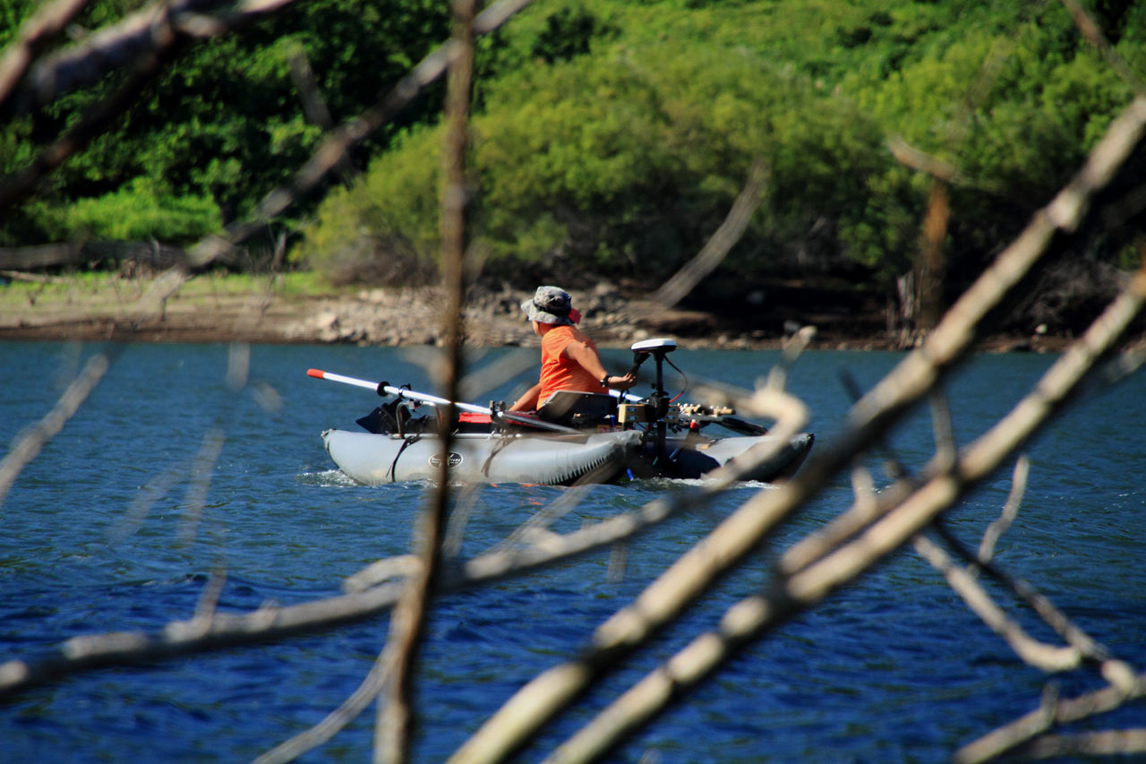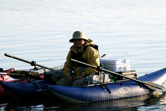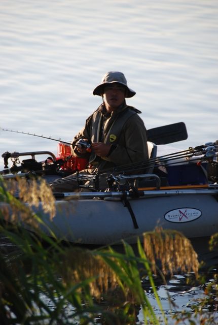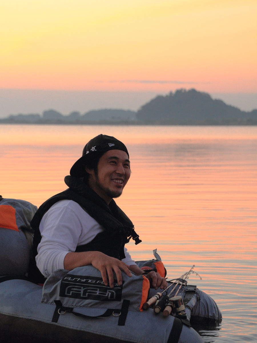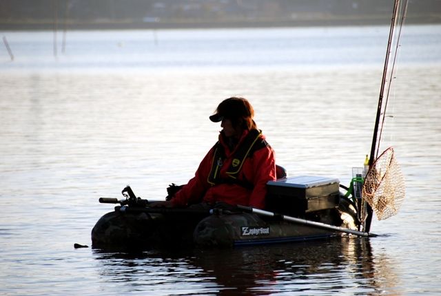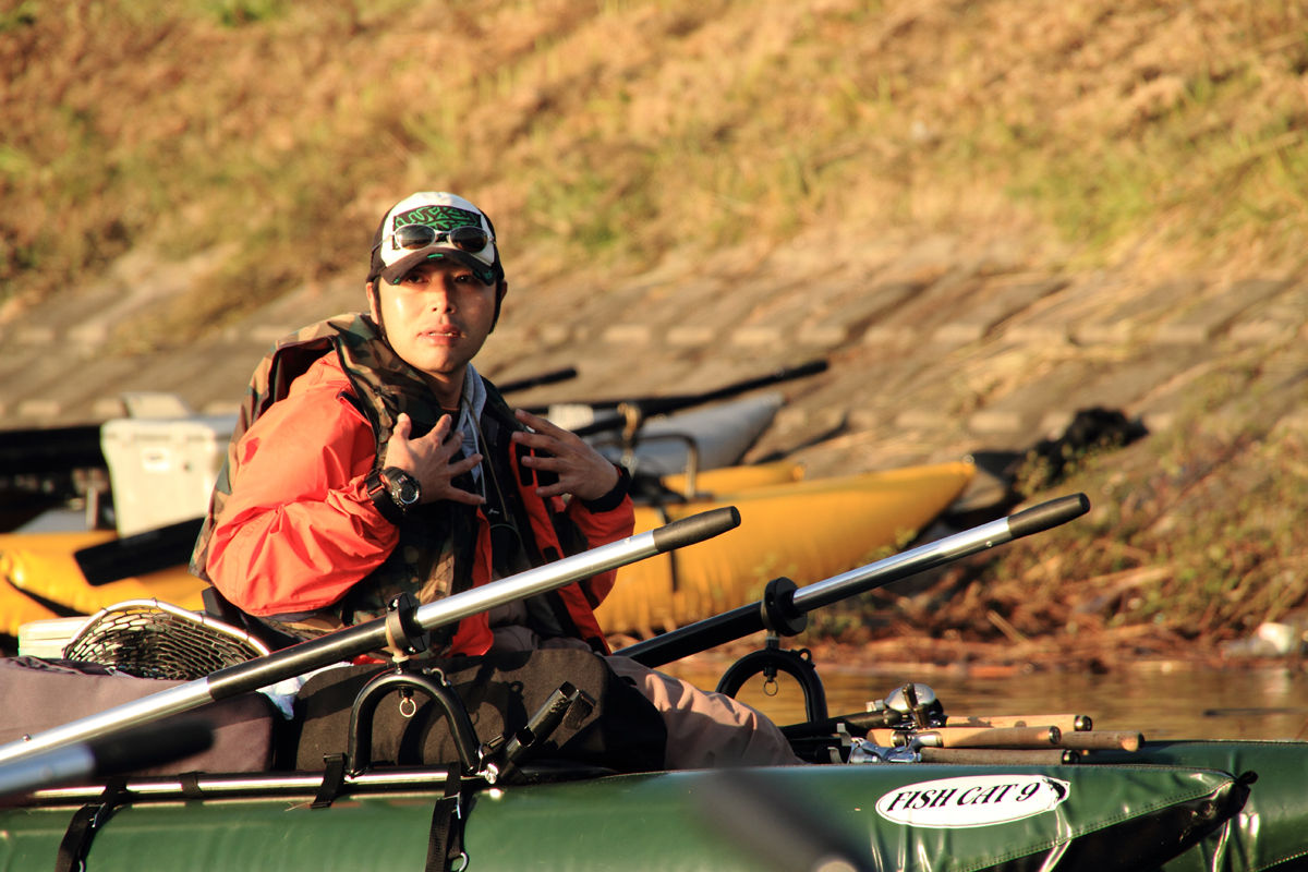 初参加の佐藤氏。ポンツーンボートでは今回が初浮き。水上の気持ち良さを実感していたようです。