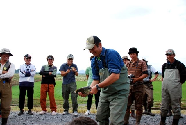 体が大きい伊藤氏が持つと魚が小さく見える(笑)
