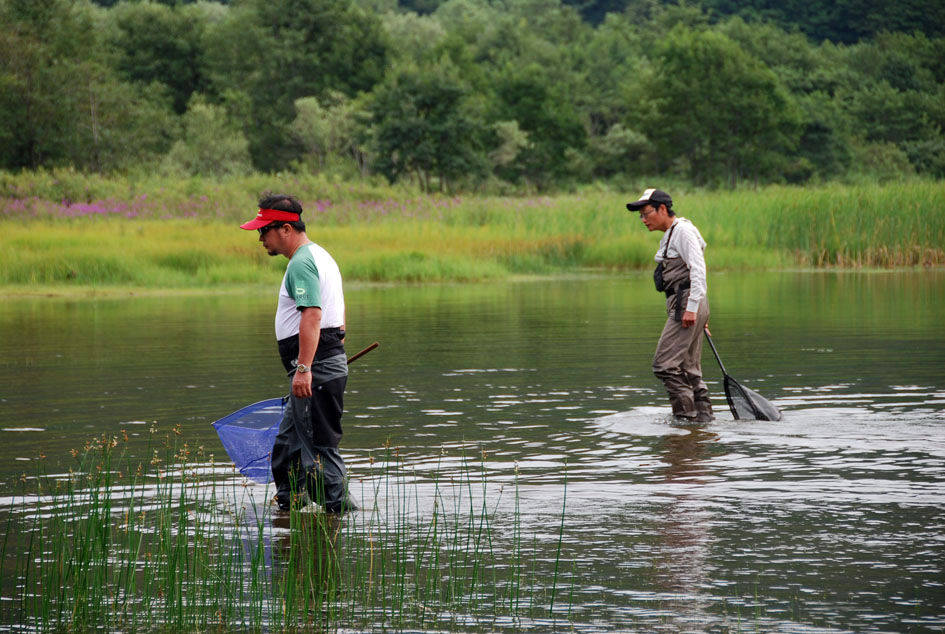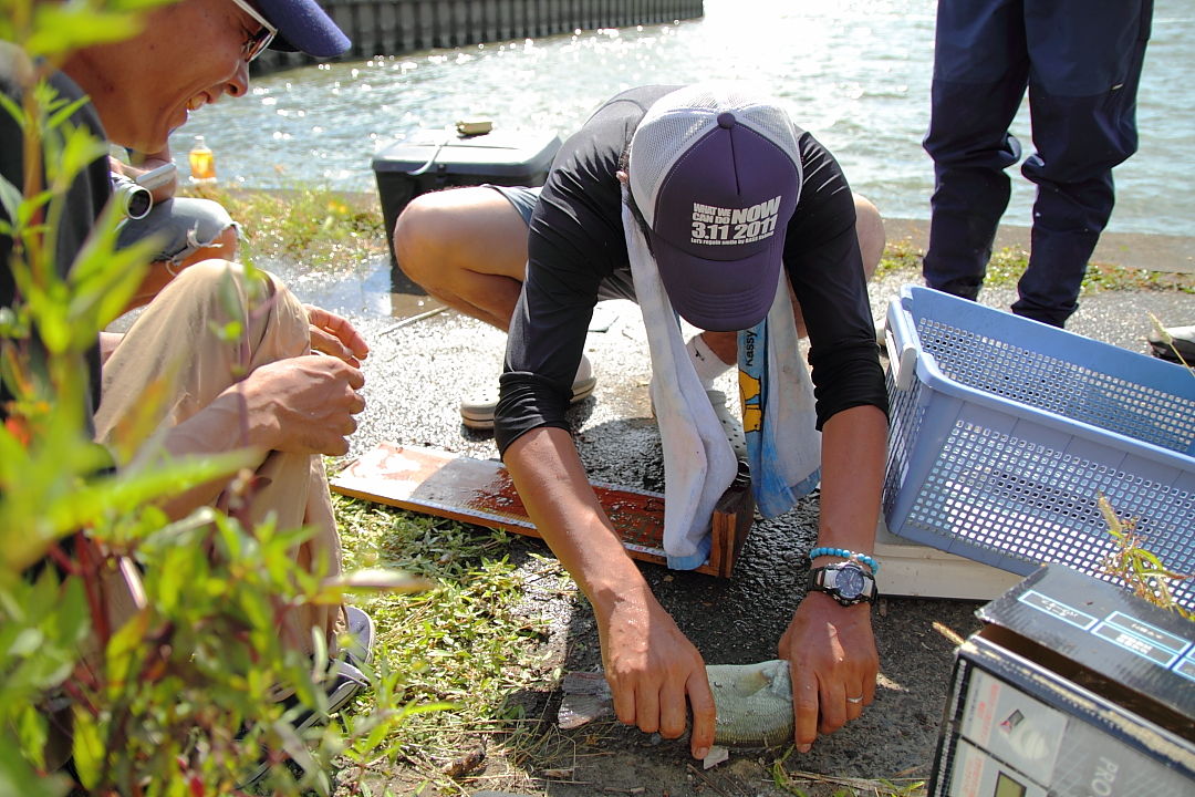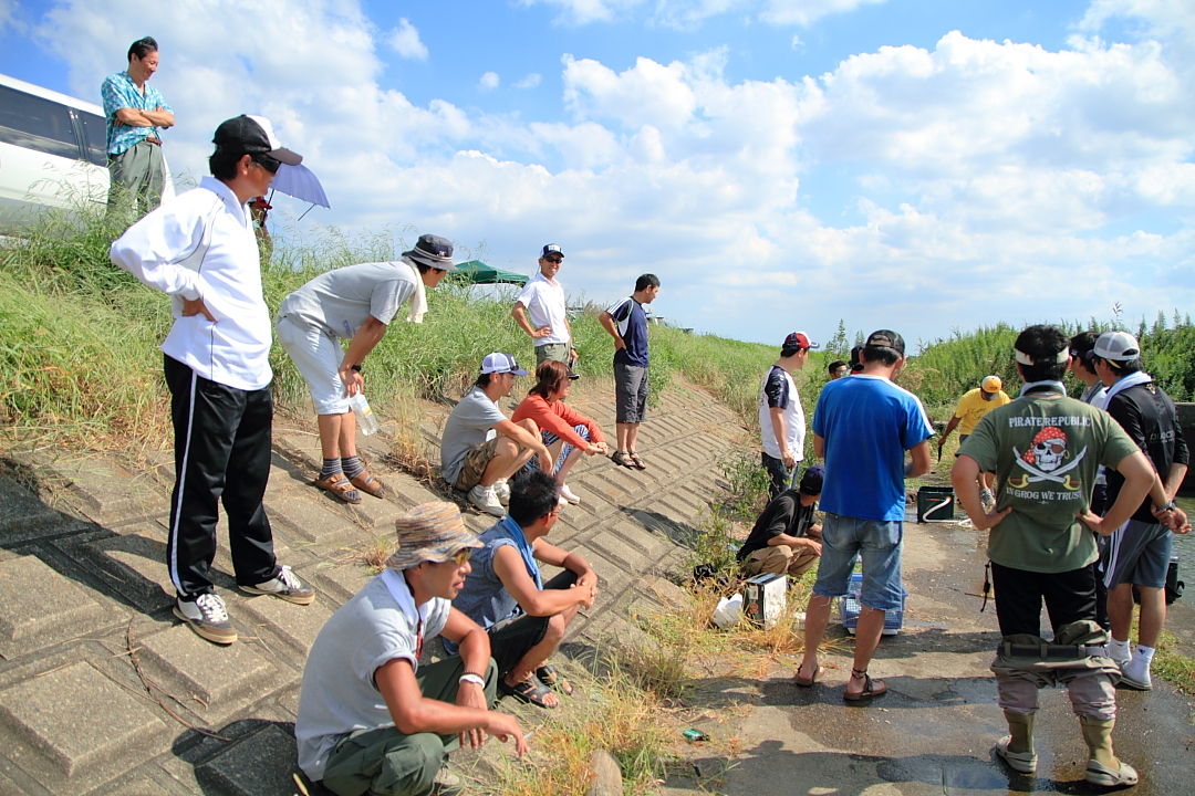 アオコの影響が少ない桜川上流で相対したマスター候補の2人。