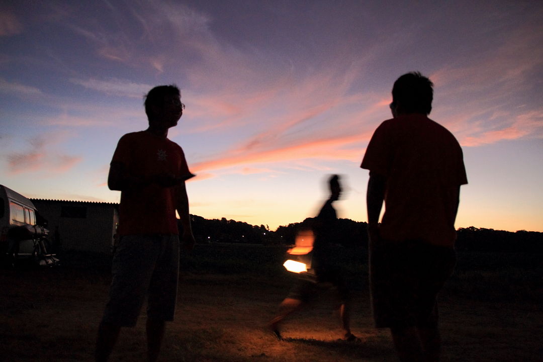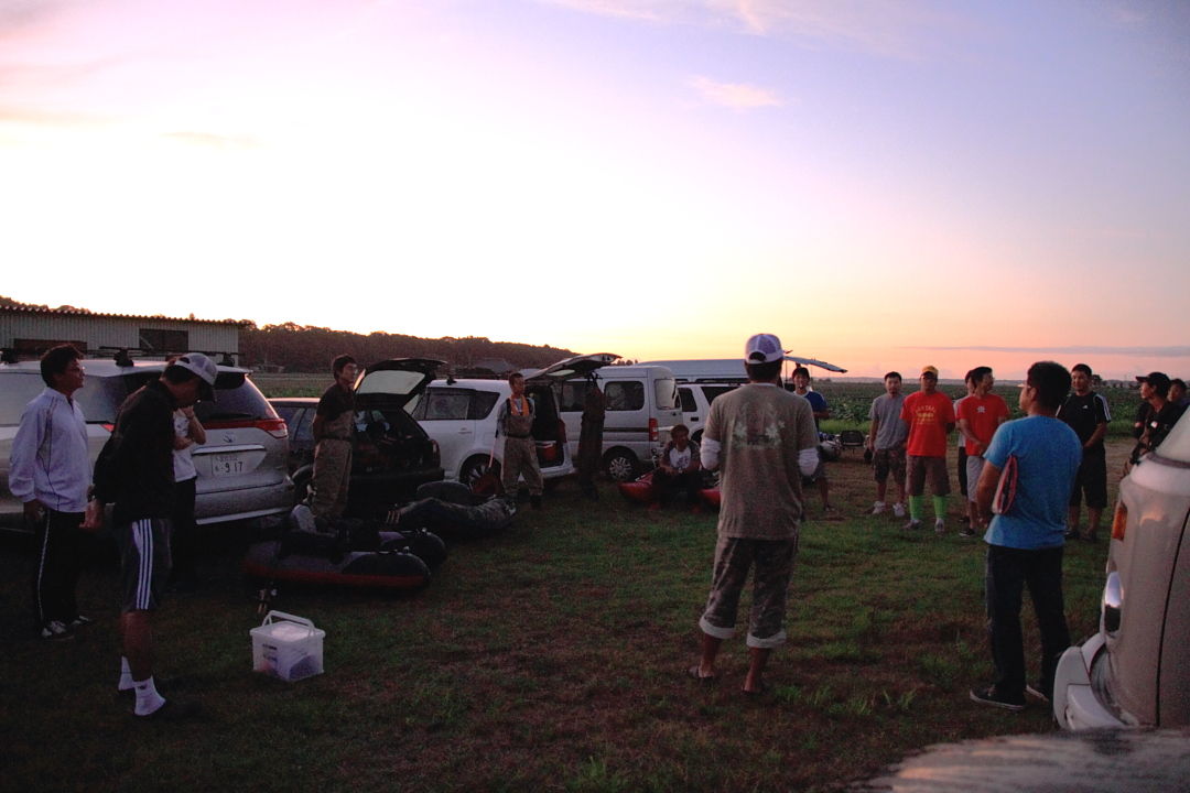 まだ夜が明けきらないうちから準備に余念がない選手たち。