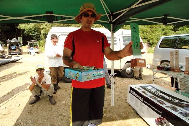 そして優勝は、藤井氏とのフローターマスター争いの一騎打ちを制した長谷川氏。今大会のビッグフィッシュとなる1235gを含む3本をそろえ、ウェイトはブッチギリの2995g。