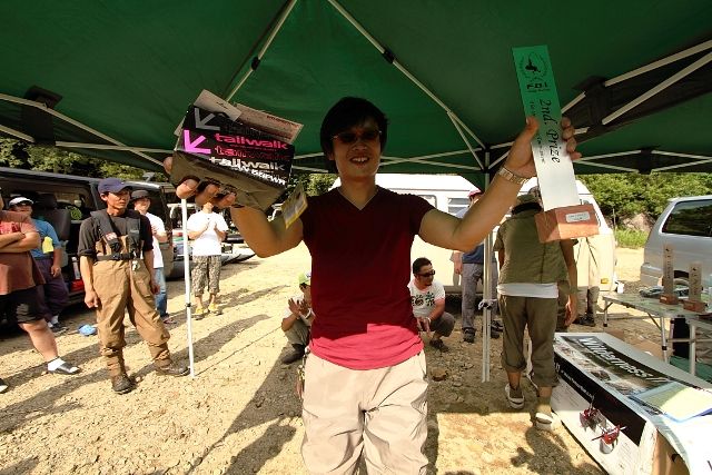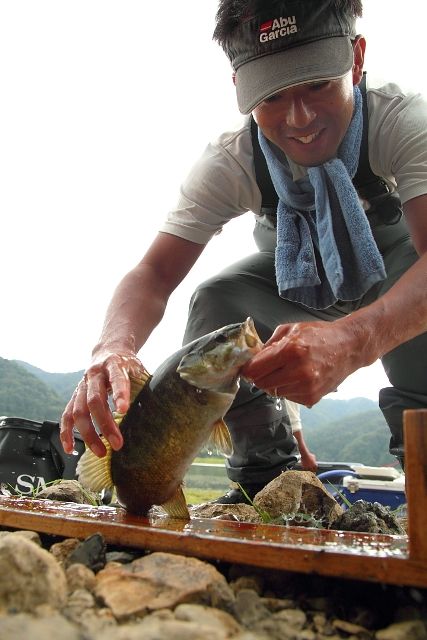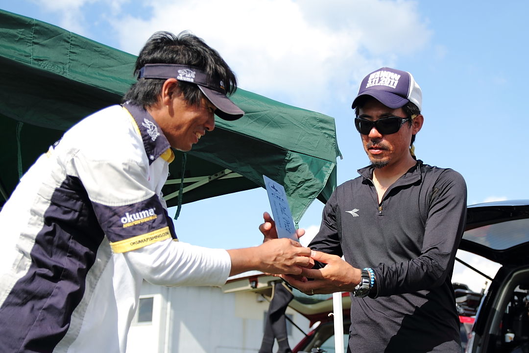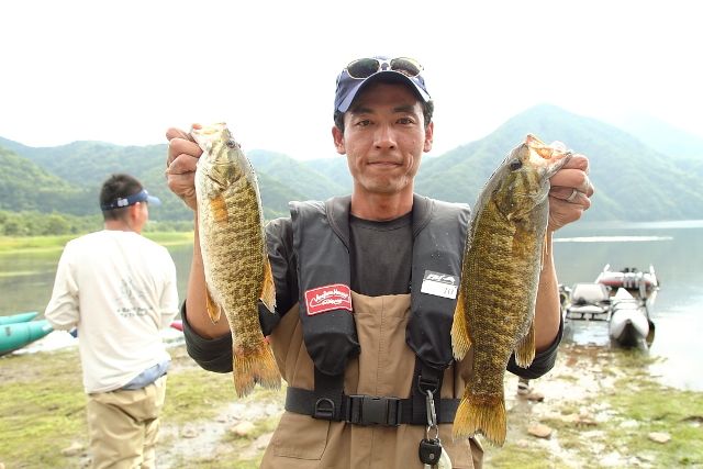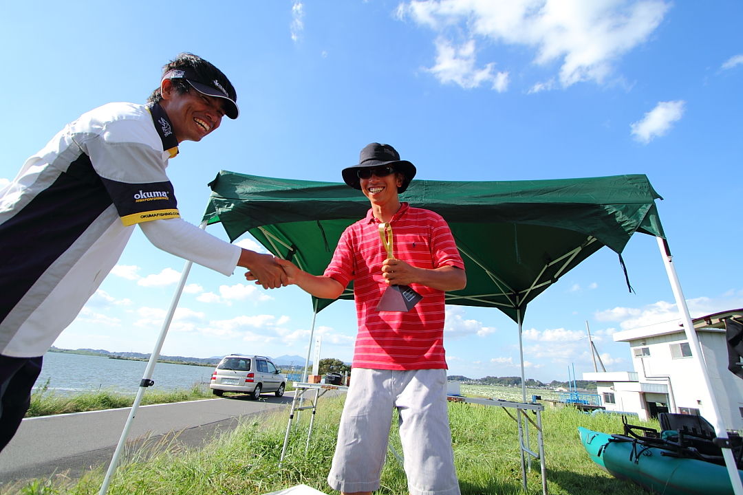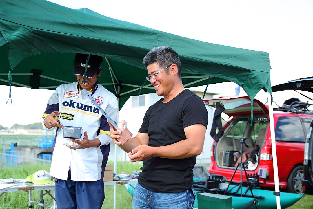 水の良い桜川の中でも、橋桁の流れの当たる側に堆積する沈みモノに良い魚が付いていることをプラで見出し、上流側からドライブスティックのヘビーダウンショットをドリフト気味にアプローチして着底後のワンアクションで食わせるというパターンがハマり、9本の魚をキャッチした。大会中に他の選手やボーターが橋桁を攻めてもバイトがない中、プラン通りに唯一人多数の魚をキャッチする様は本当にお見事でした。