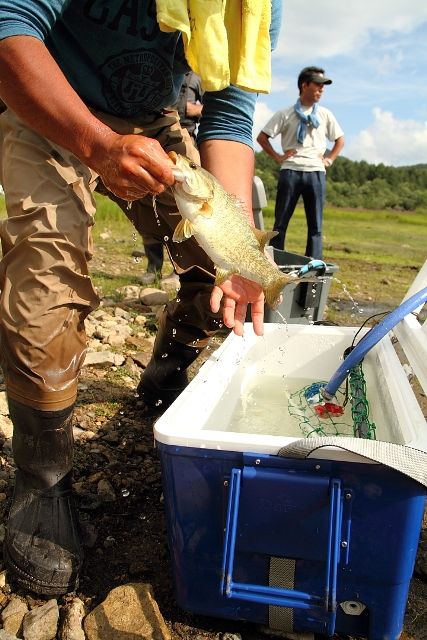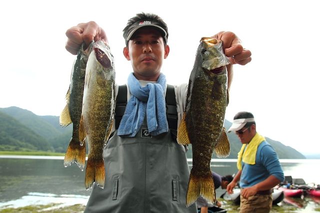 結果、参加者22人中魚をキャッチしたのは9名で、リミットメイクをしたのは2名のみと予想通りのタフコンディションでしたが、「アオコの影響の少ないエリア(水通し)」、「シェード」、「水深」のキーポイントを軸にエリアを絞り込み、そのポイントにいるバスの状況に合わせて食わせとリアクションの釣りを意識して使い分けた選手たちが良い釣果を上げていたようです。