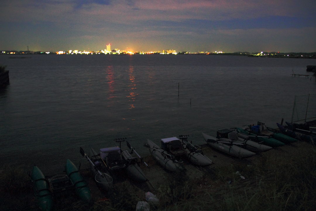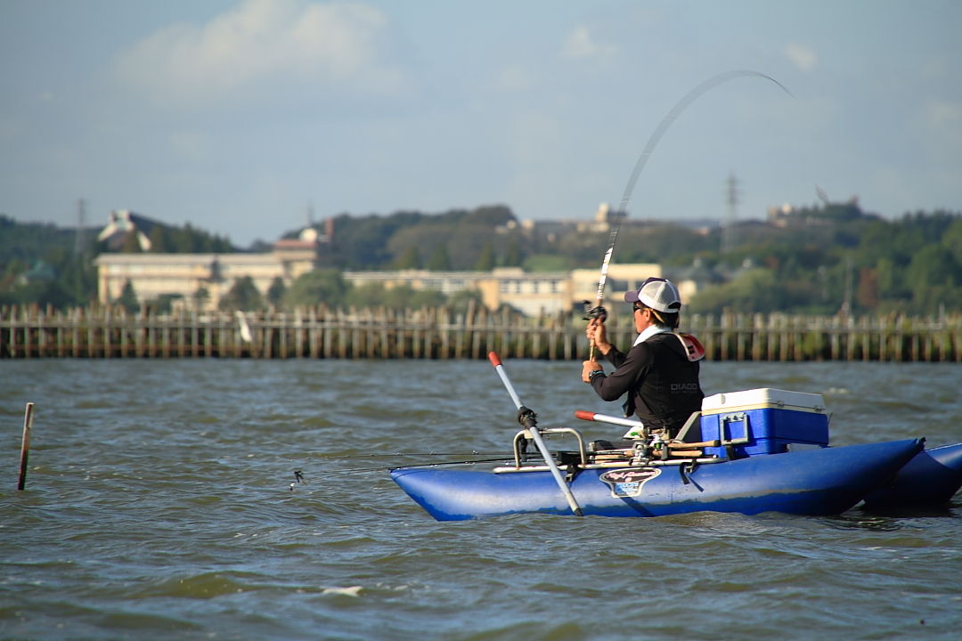 大会開催時はまだ残暑が厳しく水温は29℃前後、土浦の夏の風物詩であるアオコがいまだ水面を覆っていました。また、プラに入った選手たちによると1週間前から15~20cm程度の減水傾向で、数日前から南寄りの強風が吹き荒れている状況。タフコンディションが予想される中、選手たちは帰着時の風速や風向きなども考慮したエリア選びに頭を悩ませました。