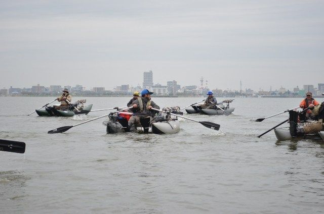 今回の大会では、これまでの大会でスタートエリアとしていた大倉川の河口エリアが雨や雪代による大増水により水没していたため、開催直前に急遽スタートエリアが中津川ワンドに変更になりました。