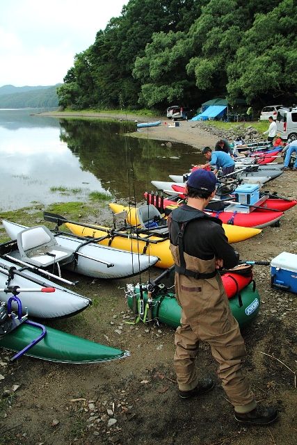 大会の朝の湖はライズもなく静まり返り、湖面は鏡のようだった。