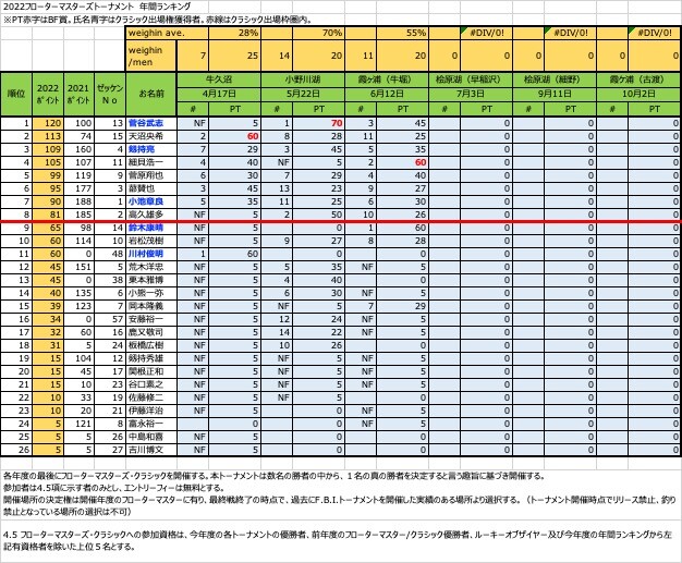 さて、F.B.I.の年間トーナメント FloaterMasters2022も、早くも折り返しとなりました。