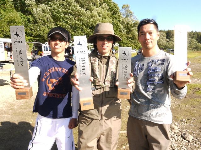 優勝は、今大会のビッグフィッシュとなった720gを含む3本、合計1700gを持ち込んだ川村氏(私です)。水深11~12m付近に回遊するワカサギの群れを狙い、ダウンショットによるシューティングで魚を揃えました。ワカサギの群れの上付近につくスモールの方がサイズが良かったので、主に中層を狙いました。運よくキッカーサイズが獲れたので優勝することができました。ありがとうございました。