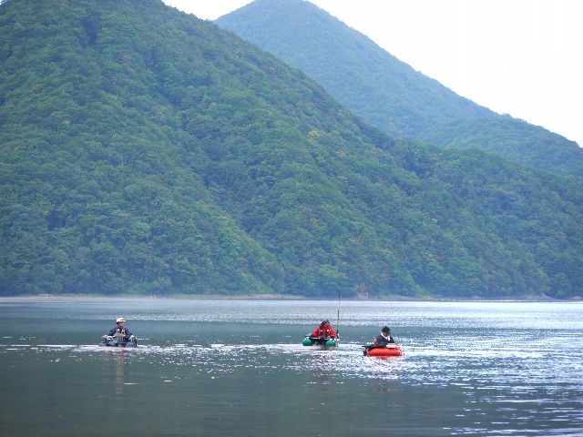 スタートエリアは秋元湖東岸大倉川の河口エリア。