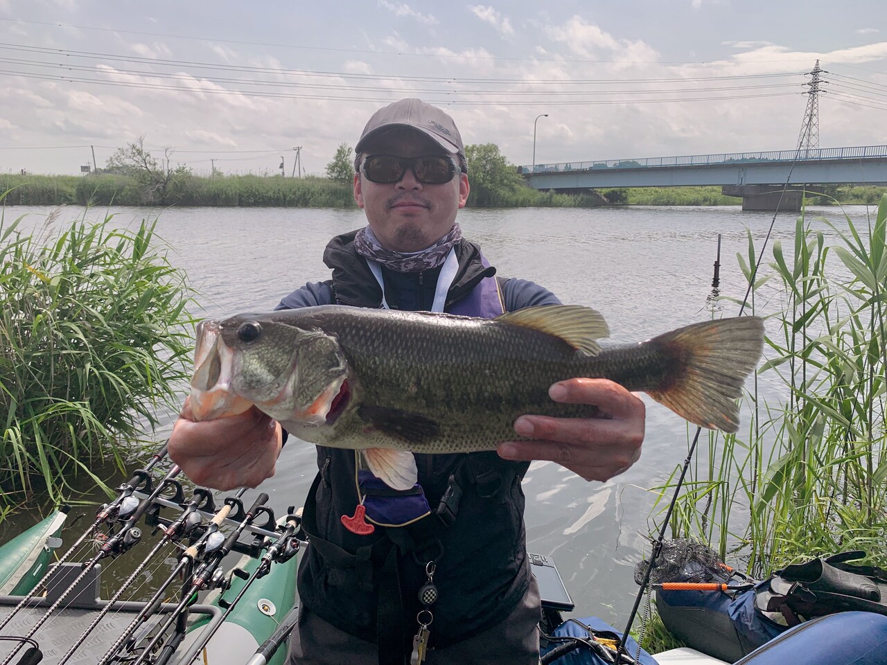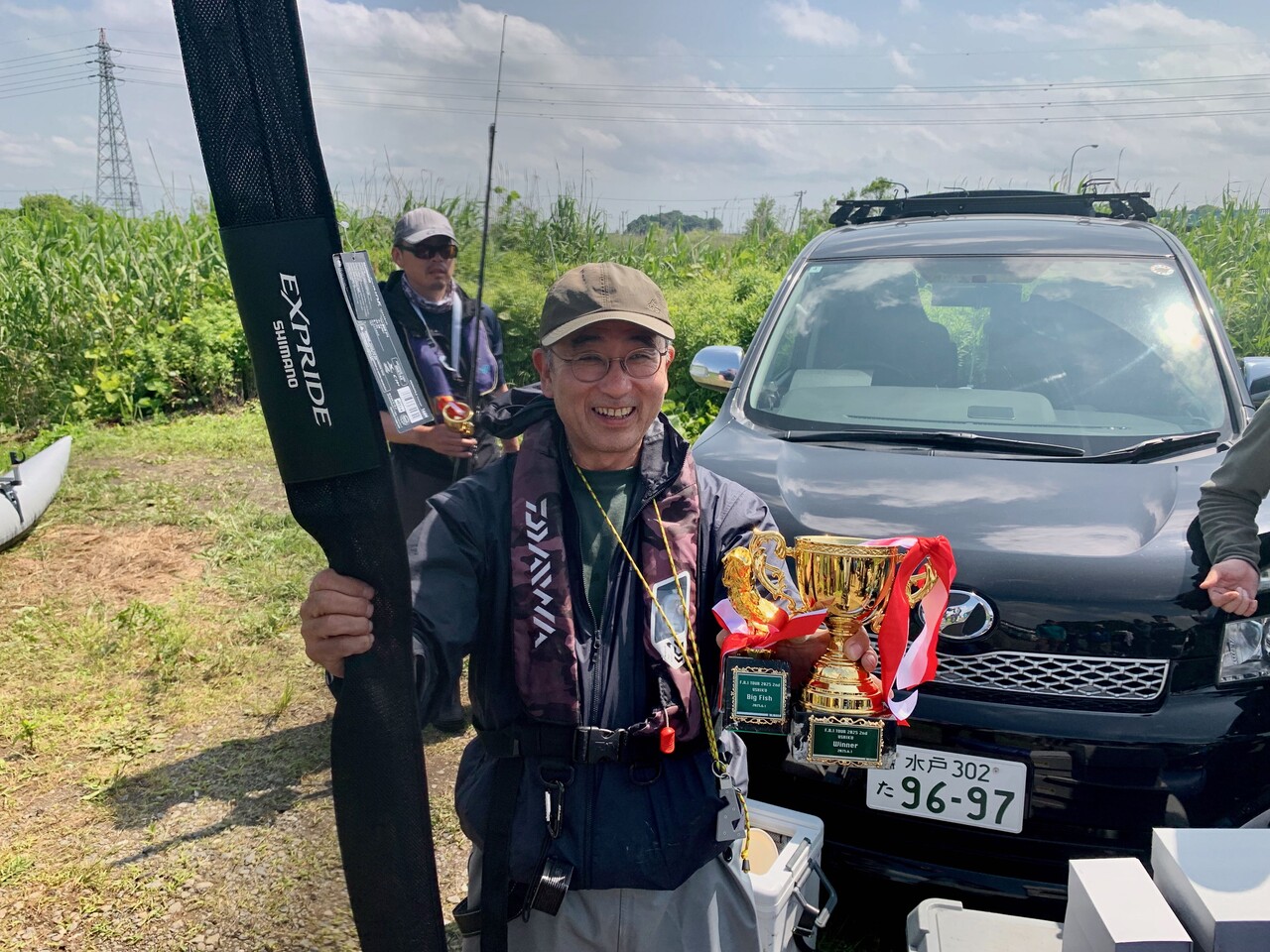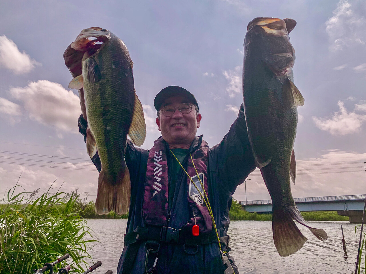 蔀氏と同様に水深のあるエリアの葦撃ちから中層からボトムをボリュームのあるルアー(スクーパーフロッグ)のミドスト&ボトストでという考えは似ていましたが、これに加えて狙うべきストレッチの絞り込み、そのストレッチを丁寧なアプローチ等の工夫で約2kgの50UPと良型の2本をキャッチし、ぶっちぎりの優勝となりました!