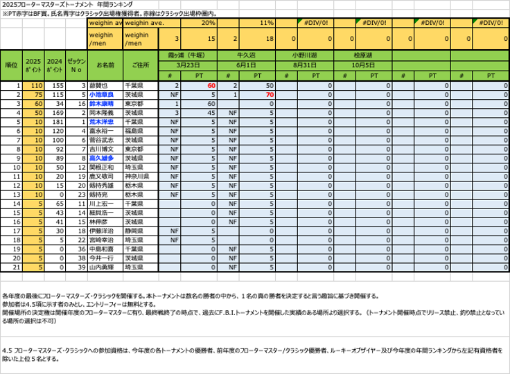 2025年 F.B.Iフローターマスターズトーナメント第2戦となる、牛久沼戦が開催されました。