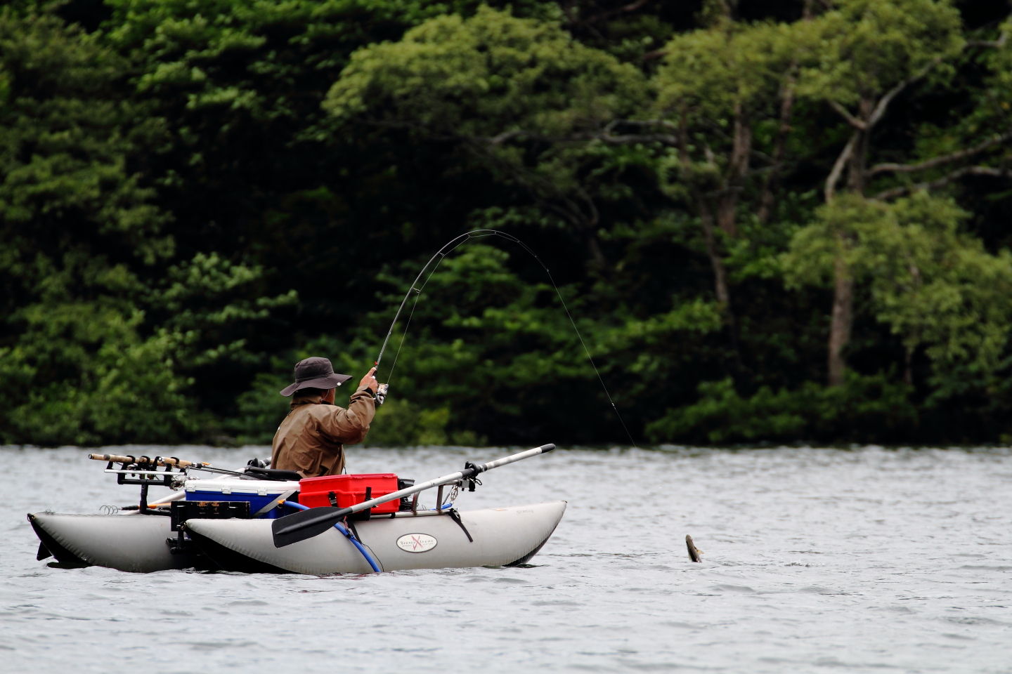 最終戦の魚もこの竿で獲ったものの、大会当日の強風にあおられた船がジャカゴにヒットして折れました。
