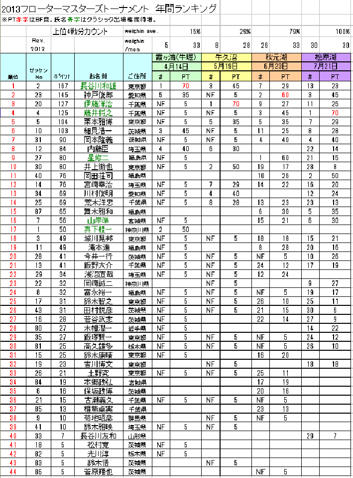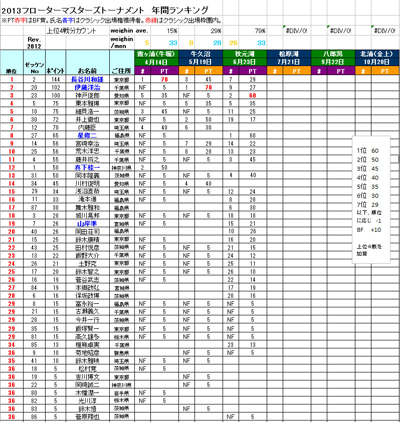 FBIに伝わるジンクス『大会運営に携わると弱くなる』は例外なく私の身体をも蝕み、ここ一番に弱い「最終戦で負け病」を患ってはや7年。。。2013年、ようやく2度目となるフローターマスターを獲得できました。