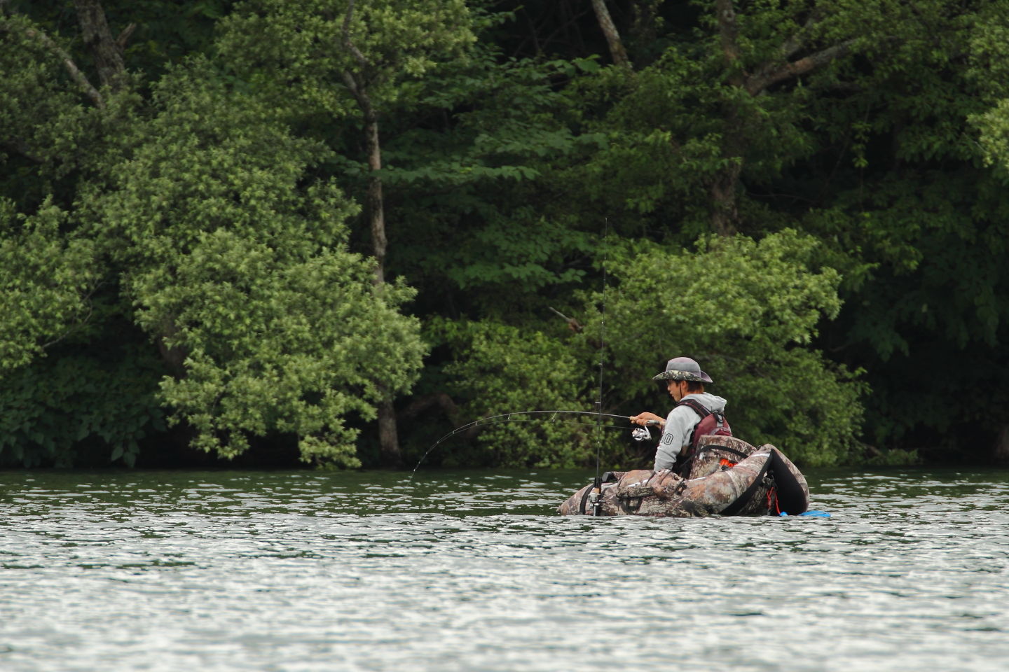 しかし、かつてトーナメントエリアの最もダイナミックな地形に張り付き、回遊するビッグバスを仕留める彼のスタイルはかつて他の選手の恐怖であり、水通しの良い岬周りを11feetのビッグフローターが陣取る姿にはまさに王者の風格があった。