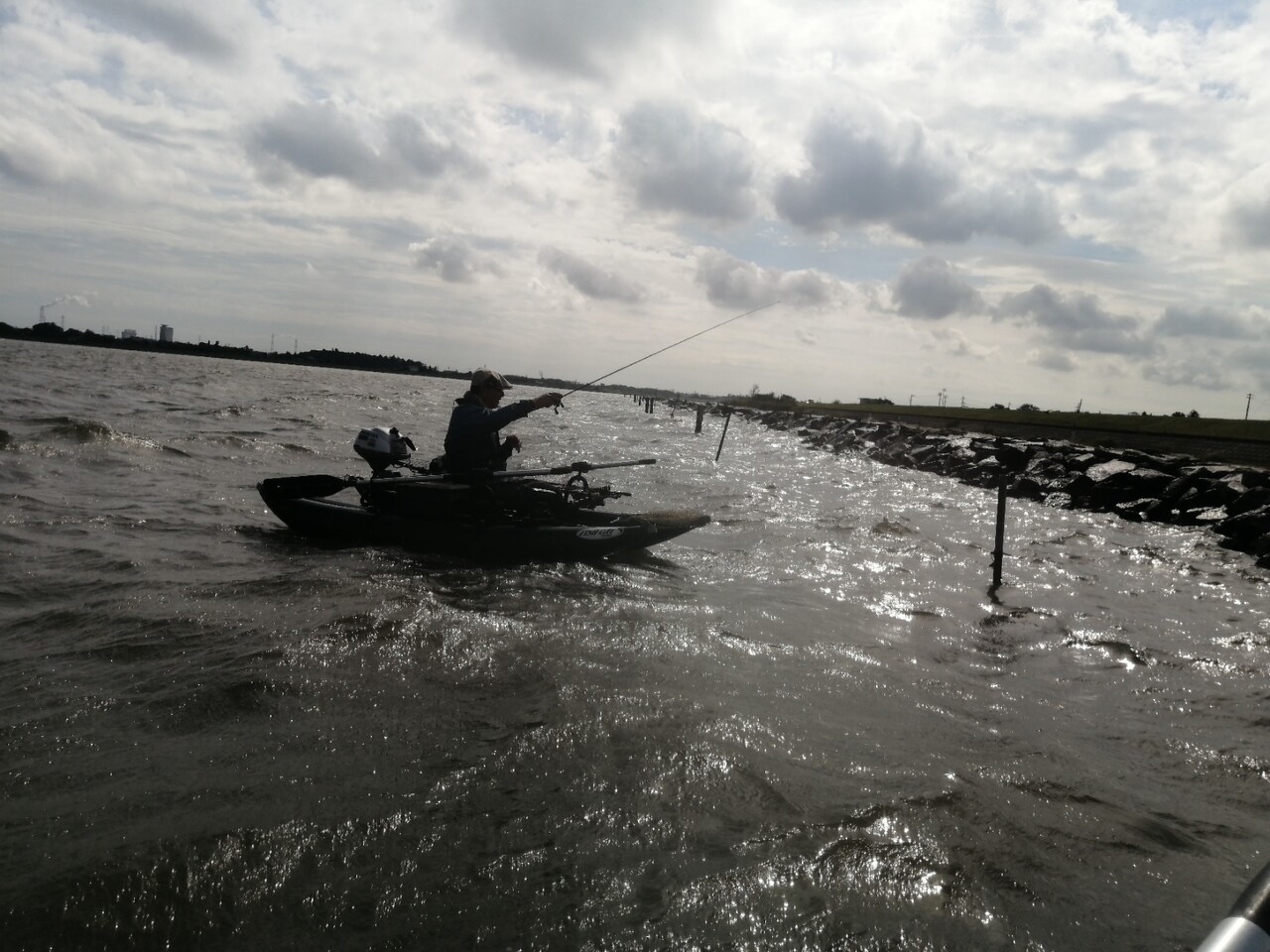 愛艇エアバードを追い越すように横を通過する巨体!そいつの鼻先に活虫を投げたら食った!という必勝パターンにまたまたびっくり!