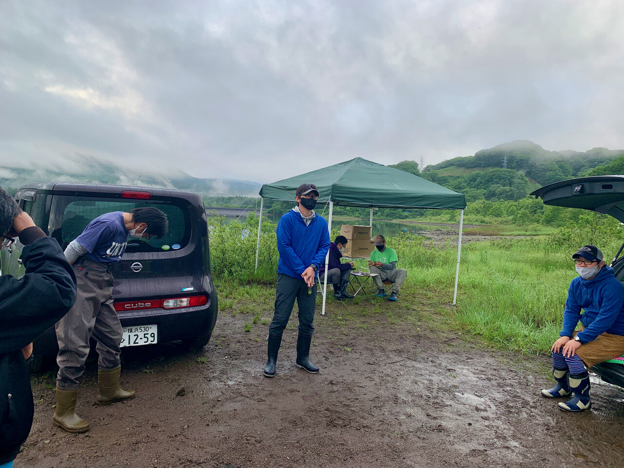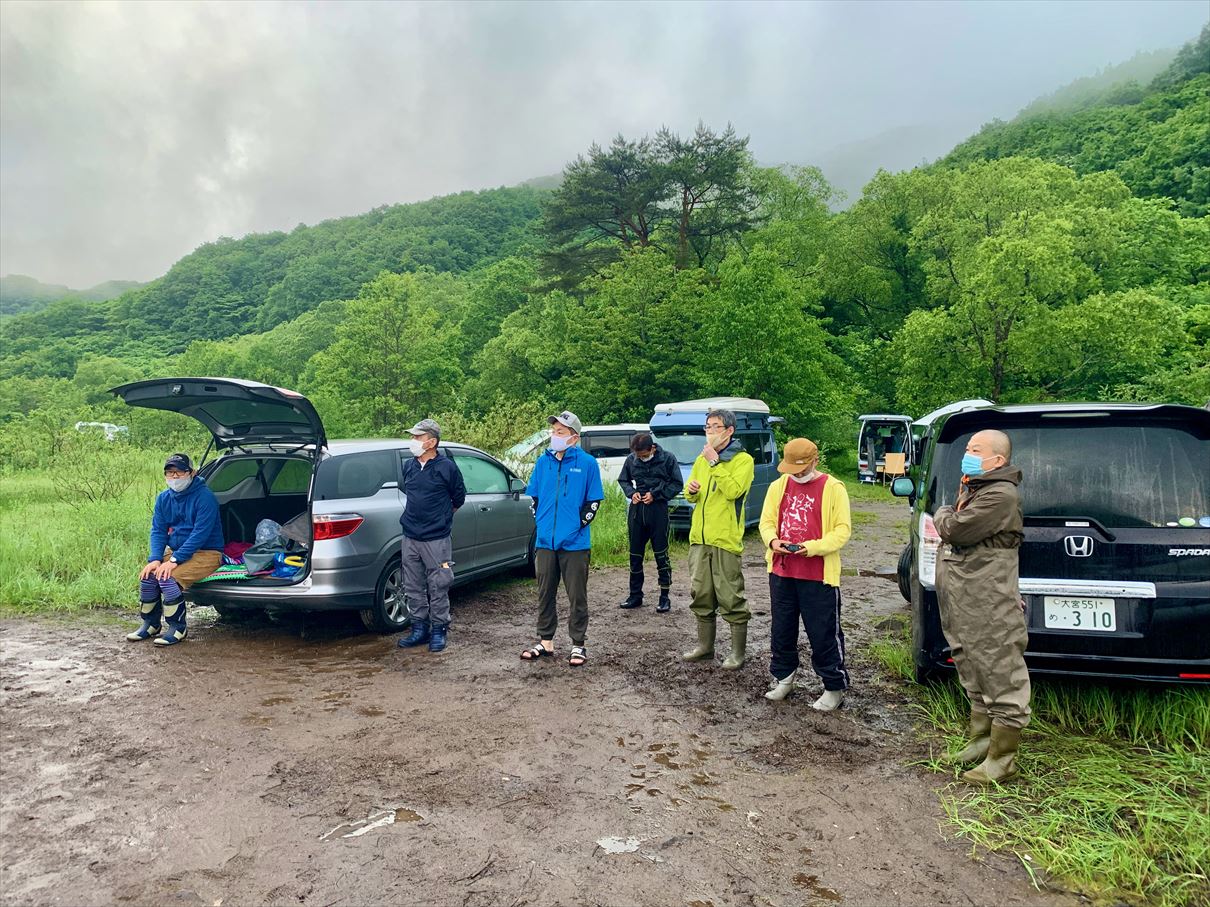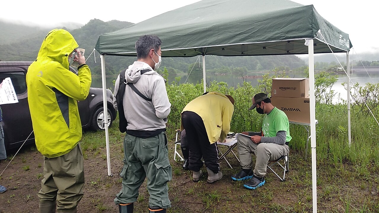 ミーティングでは、ソーシャルディスタンス、マスク着用で、天候や禁止エリア、一般アングラーとの距離感やその他留意事項など参加選手の安全確保とマナー等についての注意喚起が徹底されます。