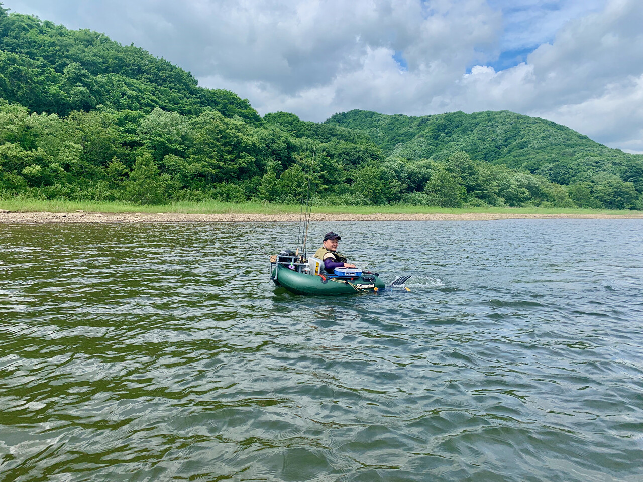前日は朝から雨が一日中降り注ぎ、湖上に出た選手達が寒さで中断して戻って来るほど…